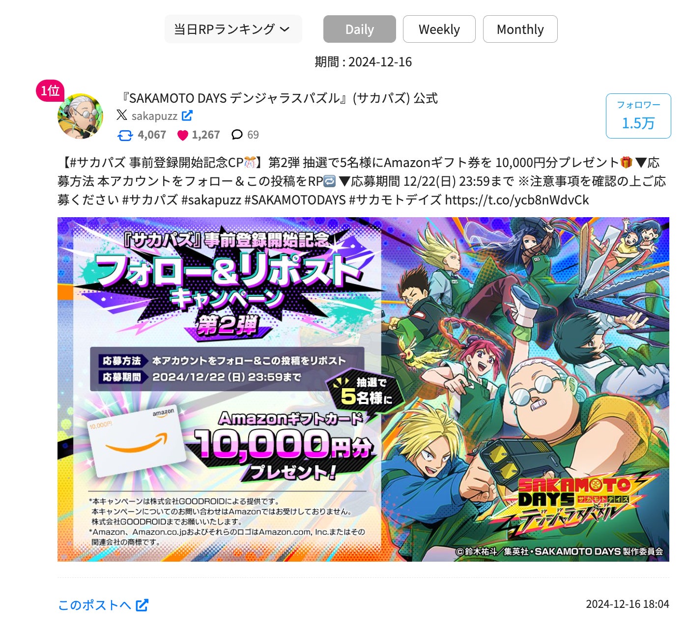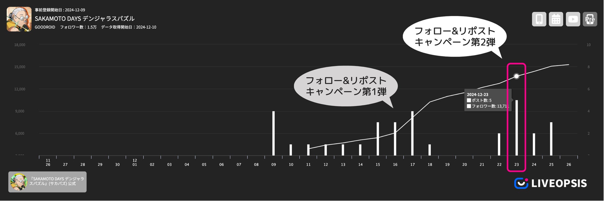 ~12月17日~25日は「SAKAMOTO DAYS」のスマホゲームが6,000以上フォロワーを伸ばす~
