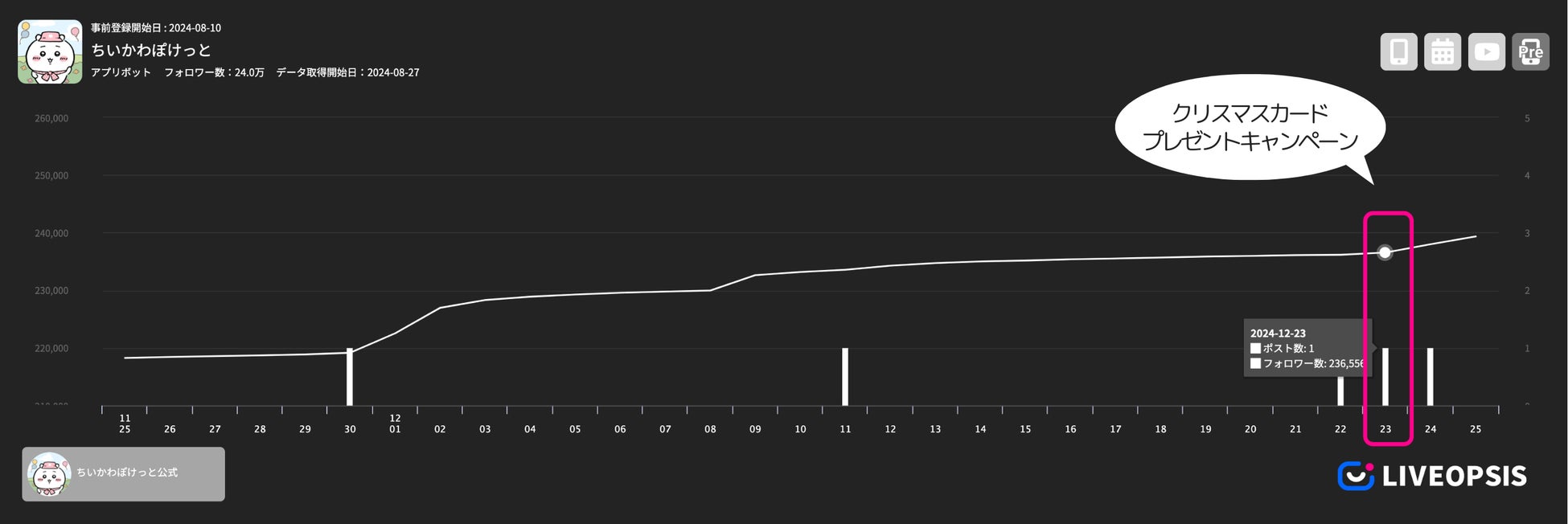 伸びたきっかけは、12月23日X投稿の事前登録開始記念フォロー&リポストキャンペーン。抽選でAmazonギフト券がプレゼントされるもので、16日にもおこなわれたキャンペーン第2弾となります。