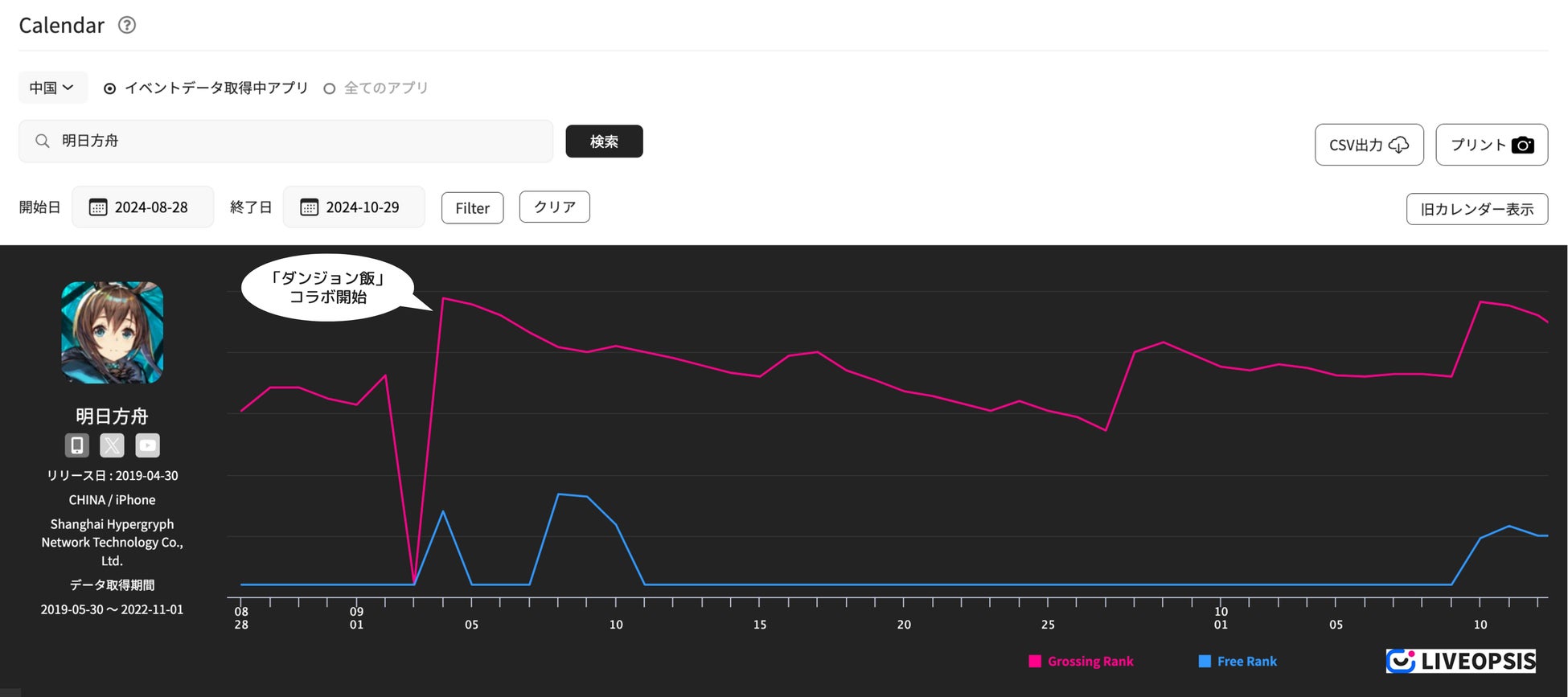 (LIVEOPSIS調査/コラボ開始前後の中国iOSストアランキング推移)